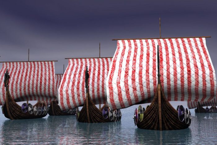 While most people associate Vikings with raiding and conquest, they were among the first serious explorers, travelling far afield from their Scandinavian homelands. Our ancestors, Dad found, sailed far and wide because of their amazing seamanship, stalwart longboats, and creativity with communications. On land, communicating was straightforward, using runners and signal fires. At sea, however, runners were impossible and signal fires were both hazards for the ships and could have tipped enemies to their presence. What was left was line-of-sight methods, typically involving flags (rudimentary forms of semaphore) and using their sails for sending basic messages such as: “Come to my aid!”; “Go away!”; “Go left!”; “Go right!”. They could ask questions with their sails such as “Who?” or “Where?” They also had common interjections like: “Hey!”; “Look out!”; and “There are women here!” One special reminder in common use was: “Plunder and pillage first, then burn!” Ah, priorities.