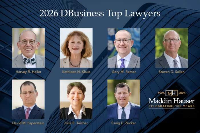 In the newly released DBusiness Magazine featuring Metro Detroit “Top Lawyers,” Maddin Hauser is pleased to announce that seven shareholders have earned a spot on the 2026 list. These superb attorneys are named as a testament to their legal prowess and the high esteem in which their peers hold them.