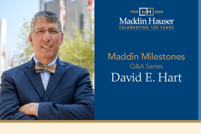 In 2025, Maddin Hauser proudly celebrates its 100th anniversary. Since 1925, Maddin Hauser has flourished and been inspired by Detroit’s impressive staying power as an influential American city. In honor of a century of service to clients and our greater Michigan communities, we sat down with some of our attorneys to discuss Maddin Hauser’s history, their professional journeys, and what the future holds for the firm and its clients.