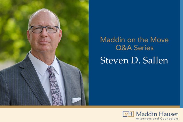 A: I have spent my entire 40-year career at Maddin Hauser focusing on real estate and business transactions. In fact, I was working at the firm as a law clerk even before I passed the bar. What impressed me then, and continues to fill me with immense pride now, is the firm’s absolute commitment to practicing law at the highest level. What distinguishes us, I think, is our ability to provide our clients with exceptional service and sophisticated representation while eschewing the bureaucracy and other needless impediments that can come with a larger firm. I have a visceral dislike of bureaucracy, and I’m the CEO.