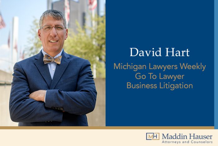 Maddin Hauser is thrilled to announce that Michigan Lawyers Weekly selected executive committee member David E. Hart as a “Go To” lawyer in business litigation.